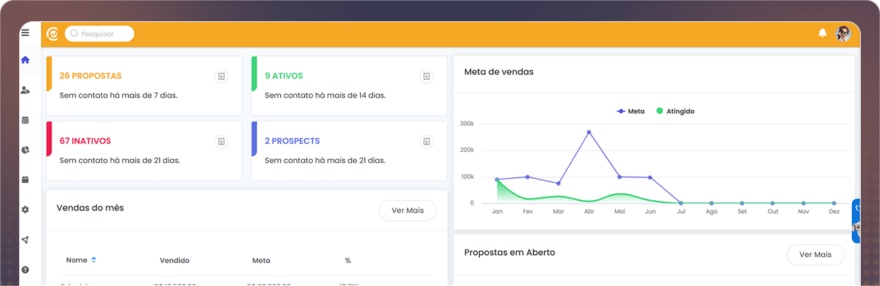 Nosso CRM vem com método de vendas embutido, voltado para resultados práticos e organização da carteira.